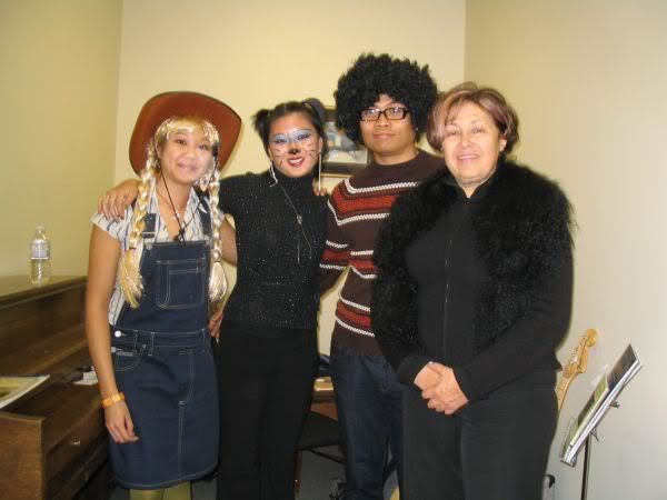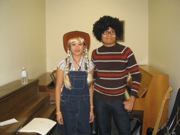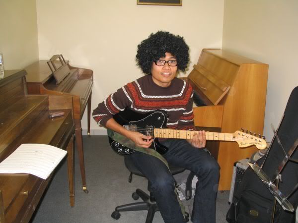 i had to teach so i went to worok in my costume, and lent phil my afro wig